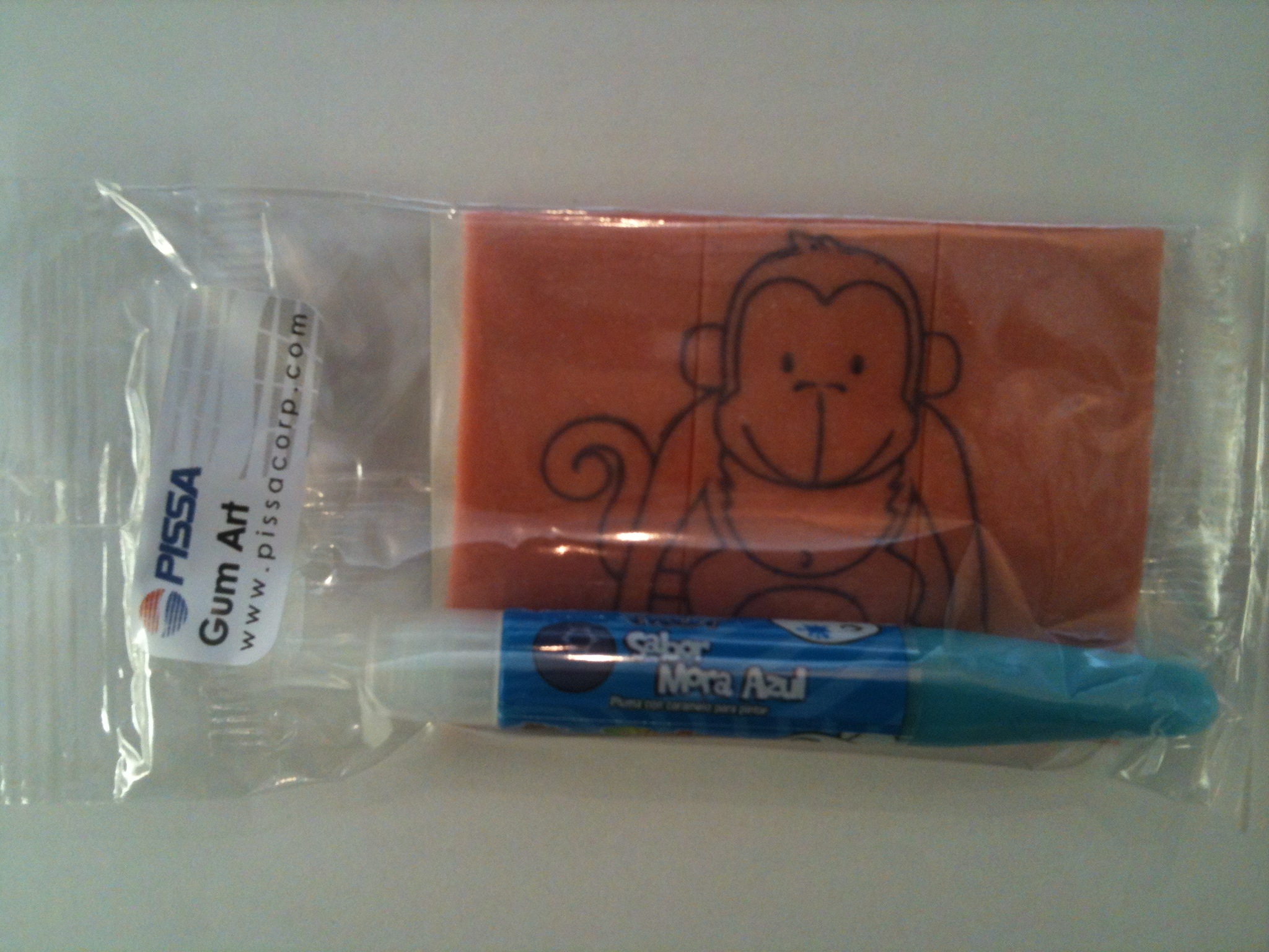 – GUM ART: It is not just a product, but a concept in itself. Mr Carlos Palomino (thanks for your time!) explained the concept “Fun to play, easy to share”. So it this case we have a sheet of gum (16 gram!) with a design painted on it. This design can be adapted to licenses. Then we have a pencil filled with syrup, in such a way that the child can “paint” the gum layer with the syrup of the pen. Then can be eaten or shared with other friends. The perception resembles the feeling of a syrup filled bubble gum (because we have a liquid and a gum as well) but with the characteristic that it can be repeated several times with the same item.